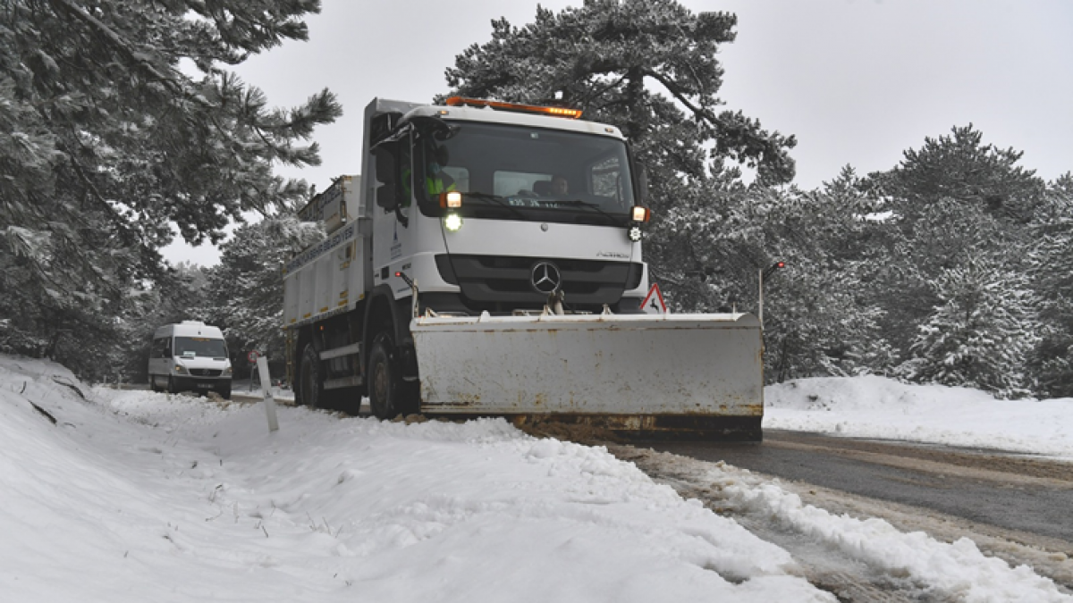 İzmir'in yüksek kesimlerinde etkili olan kar yağışı nedeniyle İzmir Büyükşehir Belediyesi ekipleri köy yollarını açık tutmak için yoğun bir tempoda çalışıyor. Yapılan müdahalelerle kapanan yollar tekrar trafiğe açılırken, ekipler ihtiyaç olan bölgelerdeki çalışmalaraara vermeden devam ediyor.