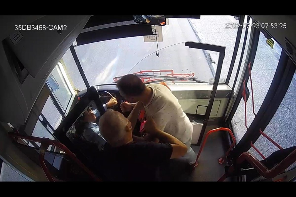 Bu sırada yolculardan G.Y. şoförden kapıyı açmasını istedi ve olumsuz yanıt alınca şoföre hakaret etti. Bunun üzerine B.A. otobüsü uygun bir yere çekerek ESHOT Şoför Destek Hattı’ndan yardım istedi. Polisin beklendiği sırada sözlü saldırının dozunu artıran zanlı, bir anda şoför koruma kapısını kırdı ve kadın şoföre yumruk attı. Yaşanan arbedede şoför B.A. sol gözünden ve kolundan yaralandı. Otobüsteki diğer yolcuların araya girmesi daha büyük bir yaralanmayı önledi. Olay anında yetişen polis, zanlıyı, kasten yaralama ve kamu malına zarar verme suçlarından gözaltına aldı. Olayın şokuyla gözyaşlarına boğulan şoför B.A. darp raporu aldı ve zanlıdan şikayetçi oldu.