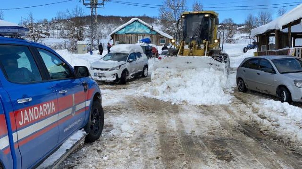 Şahısların yolda kalan araçları da traktörle kurtarılıp köye getirildi.
