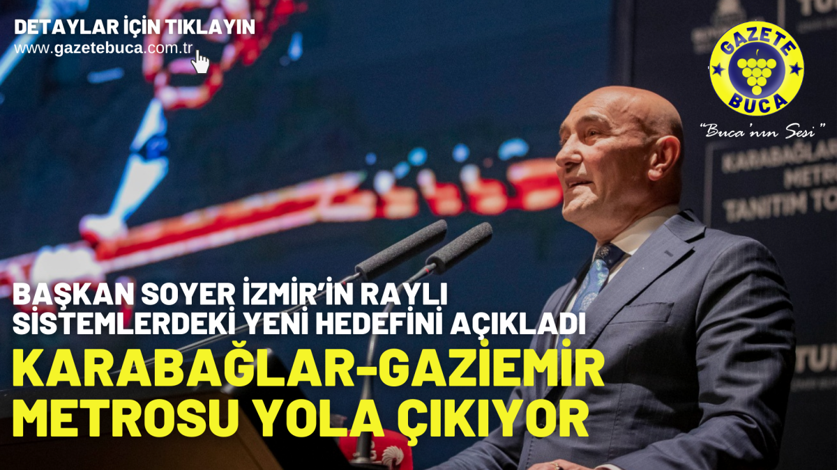 İzmir Büyükşehir Belediyesi, raylı sistem yatırımlarına devam ediyor. İzmir Büyükşehir Belediye Başkanı Tunç Soyer’in çağdaş ve çevreci ulaşım hedefi doğrultusunda Çiğli Tramvayı’nda sona gelen, Buca Metrosu’nun yapımına başlayan, Narlıdere Metrosu’nu ise bu yıl içinde açacak olan İzmir Büyükşehir Belediyesi kente yeni bir hat daha kazandırıyor. İzmir Hafif Raylı Sistemi’nin 6’ncı aşaması olacak Karabağlar-Gaziemir Metro Hattı, Ahmed Adnan Saygun Sanat Merkezi’nde yapılan törenle tanıtıldı.