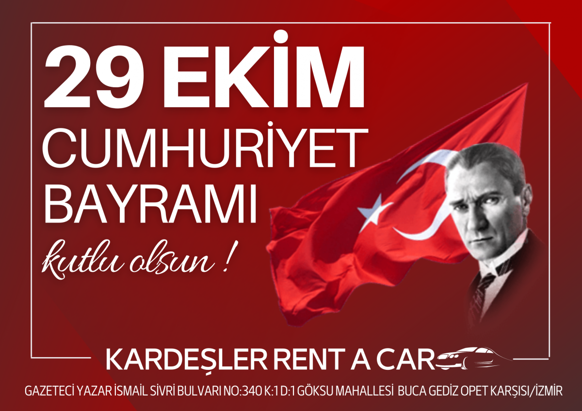 KARDEŞLER RENT A CAR AİLESİ 29 EKİM CUMHURİYET BAYRAMINIZI KUTLAR SAĞLIKLI VE MUTLU BİR BAYRAM GEÇİRMENİZİ DİLER!