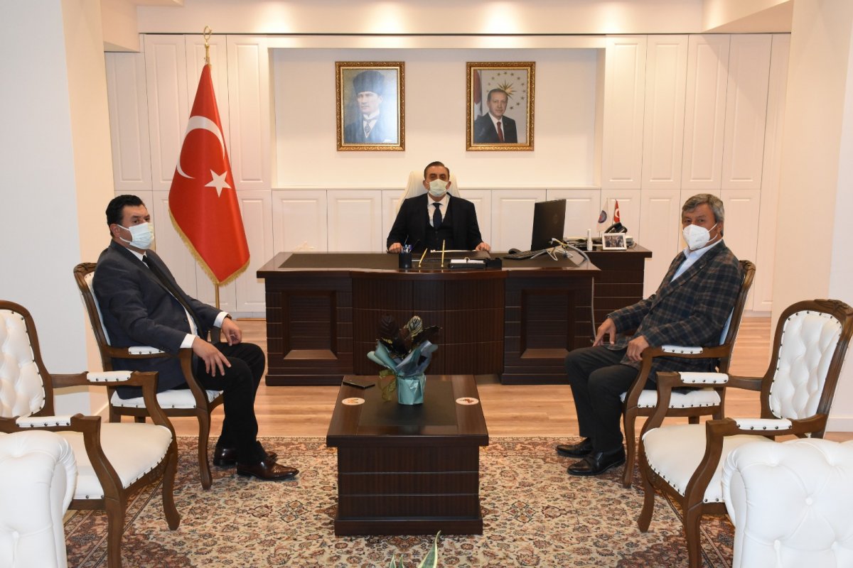 Kaymakamımız Sayın Mahmut Nedim TUNÇER. İlçe Emniyet Müdürü Ruhan Gürol SARAÇOĞLU ve Belenbaşı Mahallesi Muhtarı İsmet İLHAN'ın Ziyaretlerini Makamında Kabul Etti.