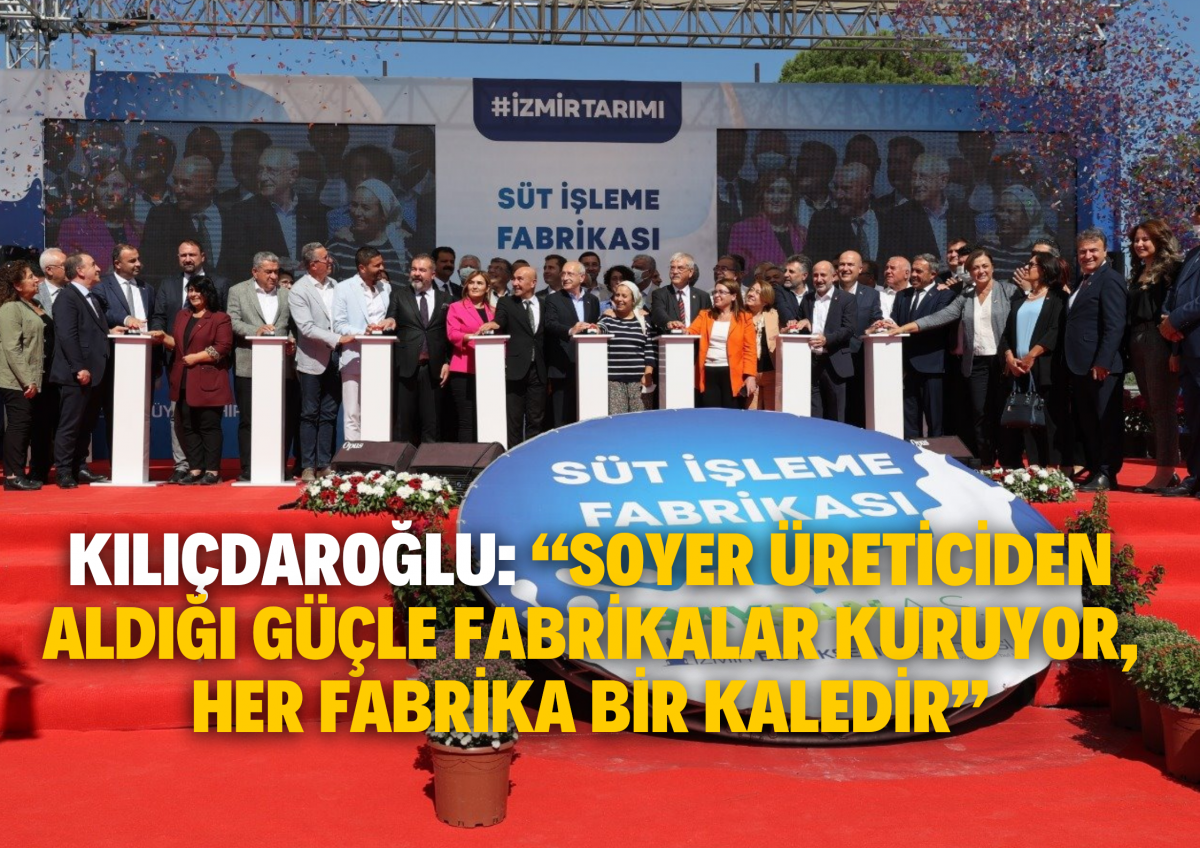 Sözlerini İzmir Büyükşehir Belediye Başkanı Tunç Soyer’e övgülerini aktararak sonlandıran Kılıçdaroğlu şu ifadeleri kullandı: “Fabrika güzel bir şey. Ektiğiniz ürünün karşılığını buradan alacaksınız. Geleceğiz fabrikada oturacağız. İşçilerle üreticilerle sohbet edeceğiz. Şimdi nasıl temelini atıyorsak Nisan ayında kurdelesini keseceğiz inşallah. Gelişmiş ülkelerde sabah sütçü sizin kapınızı çalar çocuklarınız süt içsin diye. Bizde sabah polis gelir gençleri tutuklar bir tweet atmış diye. Bu memlekete huzuru, barışı ve bereketi getireceğiz. Her mutfakta barış olacak. Her eve huzur getireceğiz. Hiçbir çocuğun yatağa aç girmediği bir ülke inşa edeceğiz. Ülkeyi Mustafa Kemal’in dediği gibi çağdaş uygarlığın ötesine taşıyacağız. Ahtım var, niyetim var, yeteneğim var. Bunu mutlaka yapacağız. Hepinize teşekkür ederim. Özelikle bu tesisi açan, sizlere kazandıran, Türkiye’ye kazandıran İzmir Büyükşehir Belediye Başkanımız Tunç Soyer’e teşekkür ediyorum. O gücü siz veriyorsunuz ona. O da verdiğiniz gücü fabrikalar kurarak değerlendiriyor. Unutmayın; Mustafa Kemal’in söylediği güzel bir şey var. Her fabrika bir kaledir. Her fabrika bir güç demektir, her fabrikada alın teri vardır, bereket vardır. Her fabrika Türkiye için bir kaledir. Çünkü her fabrika bizim birilerine el avuç açmamızı engeller. Bunun önündeki en büyük kaledir.”