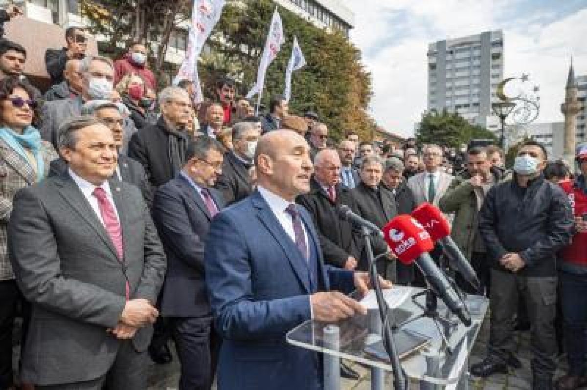 İzmir Büyükşehir Belediye Başkanı Tunç Soyer, CHP İzmir İl Örgütü tarafından düzenlenen basın açıklamasına katıldı. Açıklama sözleşmeli memurlara kadro verilmemesini ve devletin belediyelerdeki sözleşmeli memurlardan, toplu sözleşmeye dayanarak belediyelerin yaptığı ödemeleri geri istemesini (zimmet çıkarmak) protesto etmek amacıyla Konak Meydanı’nda Gazeteci Hasan Tahsin İlk Kurşun Anıtı önünde yapıldı. Açıklamaya Başkan Tunç Soyer’in yanı sıra Cumhuriyet Halk Partisi (CHP) Yerel Yönetimlerden Sorumlu Genel Başkan Yardımcısı Seyit Torun, CHP Genel Başkan Yardımcısı Veli Ağbaba, CHP İzmir İl Başkanı Deniz Yücel, CHP İzmir milletvekilleri ile ilçe belediye başkanları, Birleşik Kamu İşgörenleri Sendikaları Konfederasyonu (Birleşik Kamu-İş), Tüm Belediye ve Yerel Yönetim Hizmetleri Emekçileri Sendikası (Tüm Bel-Sen) ve Tüm Yerel Yönetim Çalışanları Sendikası’nda (Tüm Yerel-Sen) örgütlü belediye çalışanları ile yurttaşlar katıldı.