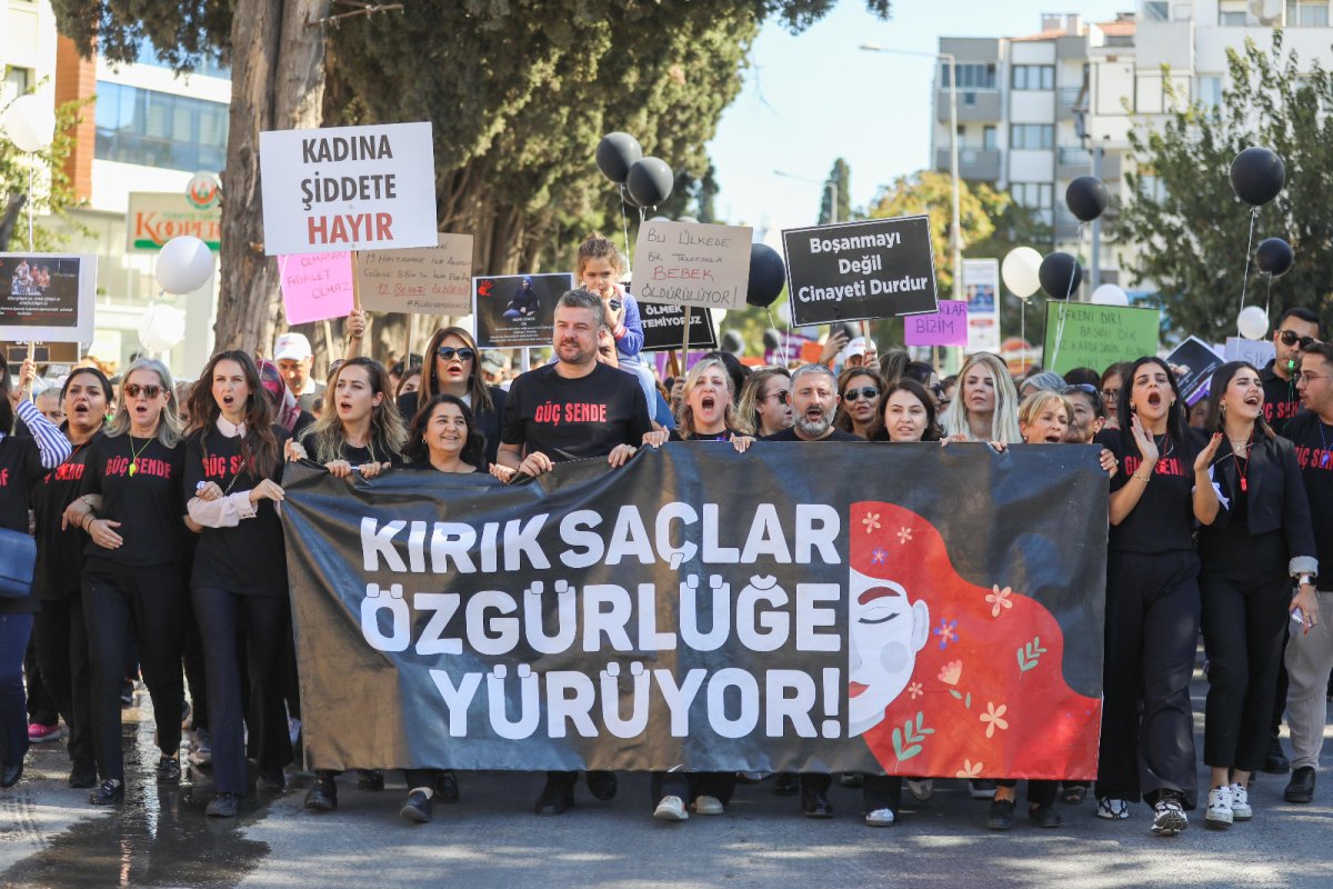 Yürüyüşe katılanlar, ellerinde "İstanbul Sözleşmesi'nden Vazgeçmeyeceğiz", "Asla Yalnız Değilsin", "Erkek Devlet Şiddetine Son" yazılı dövizler taşıdı.