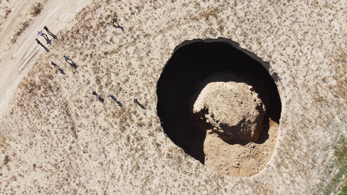 Konya'da 40 metre çapında, 70 metre derinliğinde obruk oluştu