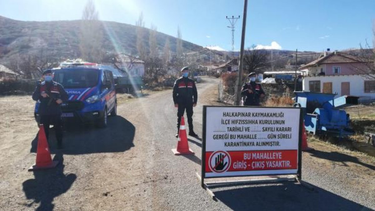 Konya'nın Halkapınar ilçesinde bir mahalle, yeni tip koronavirüs (Kovid-19) tedbirleri kapsamında karantinaya alındı.