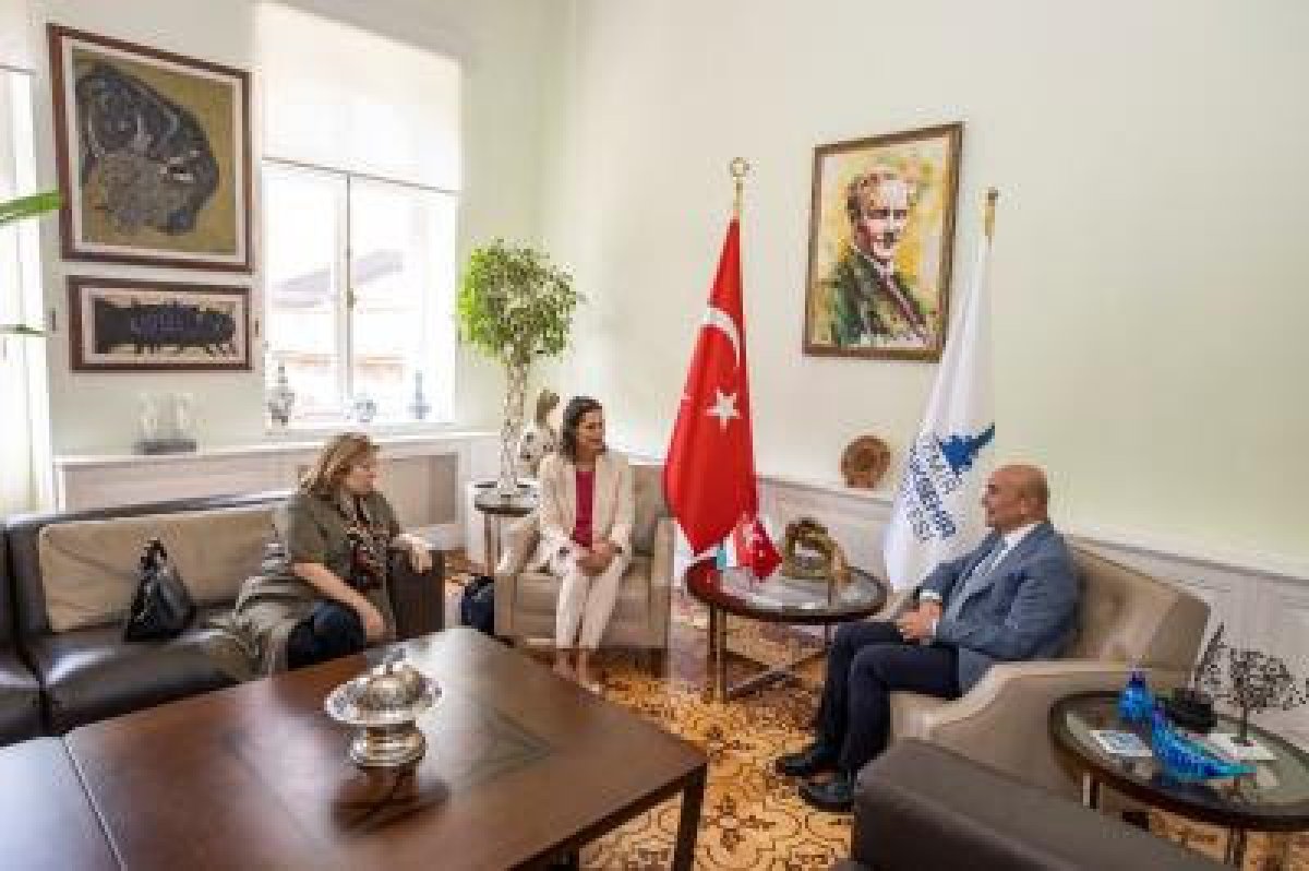 İzmir Büyükşehir Belediye Başkanı Tunç Soyer, Lüksemburg'un Ankara Büyükelçisi Angèle Da Cruz’u ağırladı. Başkan Soyer büyükelçiyi Eylül ayında düzenleyecekleri dünyanın en büyük gastronomi fuarı Terra Madre Anadolu'ya davet etti.