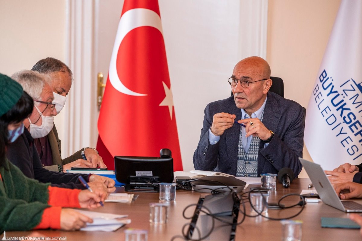 Toplantıda konuşan Başkan Tunç Soyer, bu zor dönemi sanatçılarla birlikte el ele vererek atlatmak istediklerini belirterek, “Pandemi nedeniyle zor bir dönem yaşıyoruz. Bundan sonra da benzer dönemleri yaşayacağımızın endişesini taşıyoruz. Bu tablo karşısında biz yerel yönetim olarak ne yapabilir ve nasıl bir yol izleriz bunun için bir araya geldik. Mesele kültür sanat üretiminin devam etmesidir. Bir toplumda eğer bu üretim yoksa o toplum çürür, kurur, çölleşir, çoraklaşır. Bizim temel kaygımız bu. Bu üretimin üreticileri olan sanatçıların da hayatlarını sürdürmesi lazım. Biz bu iki derdin dert olduğunu düşündüğümüz için elimizden gelenin en iyisini yapmak istiyoruz” dedi.