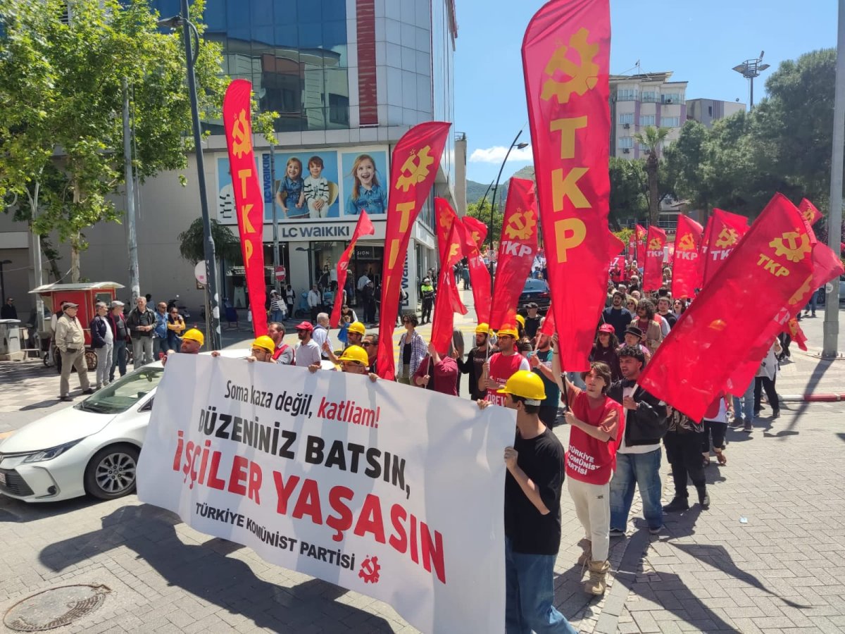 Yürüyüşe "Düzeniniz batsın, işçiler yaşasın" pankartıyla katılan TKP adına da Madenciler Anıtı önünde bir açıklama yapıldı. TKP Soma İlçe Başkanı Mehmet Horoz, yaptığı açıklamada ülke tarihinin en büyük iş cinayetinin gerçek faillerinin ve sorumlularının henüz hesap vermediğini belirtti.