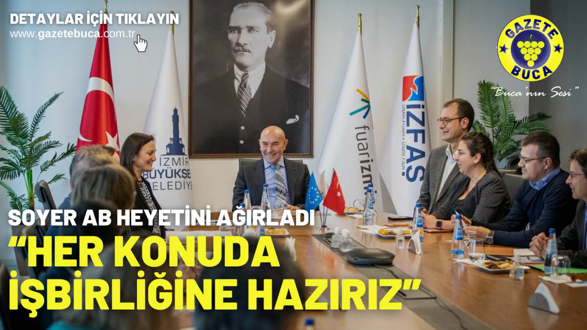 Avrupa Birliği Türkiye Delegasyonu ve üye ülkelerin elçi müsteşarlarının oluşturduğu heyet, İzmir Büyükşehir Belediye Başkanı Tunç Soyer’i Fuar İzmir’de ziyaret etti. AB Türkiye Delegasyonu Başkan Yardımcısı Elçi Müsteşar Eleftheria Pertzinidou önderliğindeki heyetin ziyaretinde İzmir Büyükşehir Belediyesi Dış İlişkilerden Sorumlu Başkan Danışmanı Onur Eryüce, İzmir Büyükşehir Belediyesi Dış İlişkiler ve Turizm Dairesi Başkanı Gökçe Başkaya, İZFAŞ Genel Müdürü Canan Karaosmanoğlu Alıcı da yer aldı.