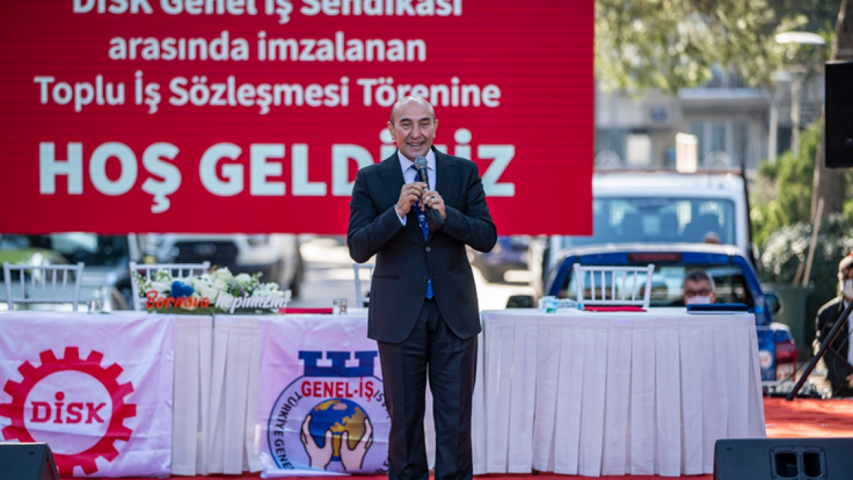 İzmir Büyükşehir Belediye Başkanı ve SODEMSEN (Sosyal Demokrat Kamu İşverenleri Sendikası) Yönetim Kurulu Başkanı Tunç Soyer, Bornova Belediyesi ile DİSK'e bağlı Genel İş Sendikası 7 No'lu Şube arasında imzalanan toplu iş sözleşmesi törenine katıldı. Bin 535 işçiyi kapsayan toplu iş sözleşmesi sonrası Bornova Belediyesi'nde asgari ücret 5 bin 890 TL oldu.