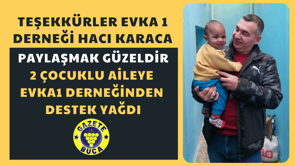 Gazete Buca'daki yardım haberine ses veren Evka1 Sosyal Yardımlaşma Derneği Başkanı, Yönetimi ve gönüllüleri İzmir Konak Ferahlı mahallesindeki Küçük Hüseyin ve Ailesine hemen yardım seferberliği başlatan ve aileye ve çocuklara yardım yapan Belediye gibi çalışan Evka 1 Sosyal Yardımlaşma Derneği Başkanı Hacı Karaca ve yönetimini kutluyorum. Paylaşmak güzeldir. Haber: Aziz Tekin