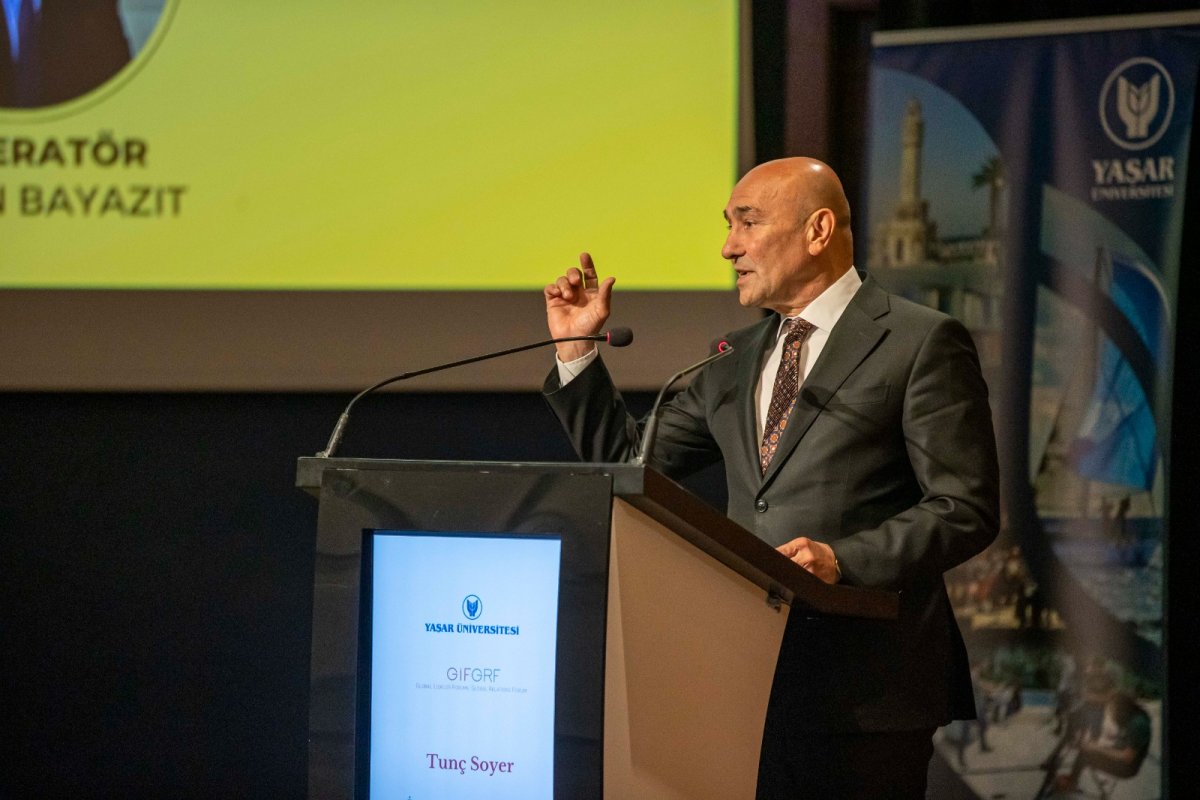 Yaşar Üniversitesi'nde düzenlenen İzmir İktisat Kongresi 100. Yıl Toplantıları'nda konuşan Başkan Soyer, “Bu ülkede iyimser olmak için çok sebebimiz var ama üç şeye ihtiyacımız var; akıl, vicdan ve cesaret. Eğer bunları diri tutabilirsek bu olağanüstü bereketli topraklarda, kadim kültürlere ev sahipliği yapmış topraklarda çok daha iyisini yaşamak ve yaşatmak mümkün” dedi.