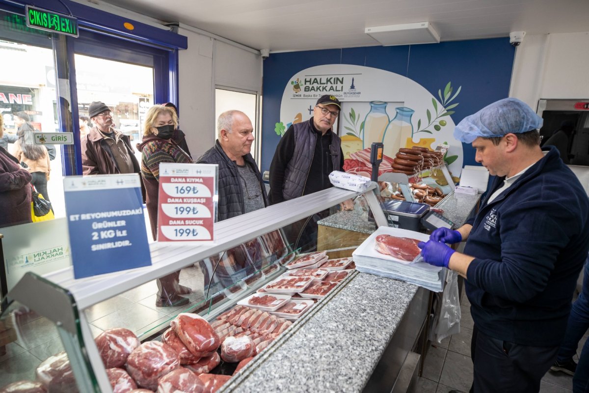 İzmir Büyükşehir Belediyesi'nin halka sağlıklı, ucuz ve güvenilir gıda ulaştırmak için kentin farklı bölgelerinde açtığı Halkın Bakkalları, "Halkın Kasabı" reyonlarıyla yenilendi. Büyükşehir iştiraki İzTarım A.Ş.'nin kırsalda küçük üreticiye can suyu olan Ödemiş Et Entegre Tesisi'nde hazırlanan işlenmiş ve karkas et ürünleri, artan enflasyona karşı uygun fiyatla İzmirlilere sunuldu. İzmir Büyükşehir Belediye Başkanı Tunç Soyer, Halkın Kasabı’nın Bornova Erzene’deki şubesini ziyaret ederek alışveriş yapan vatandaşlarla bir araya geldi. İzTarım Genel Müdürü Murat Onkardeşler’den bilgi alan Başkan Tunç Soyer, Ramazan boyunca fiyatlarda artışa gitmeyeceklerini söyledi.