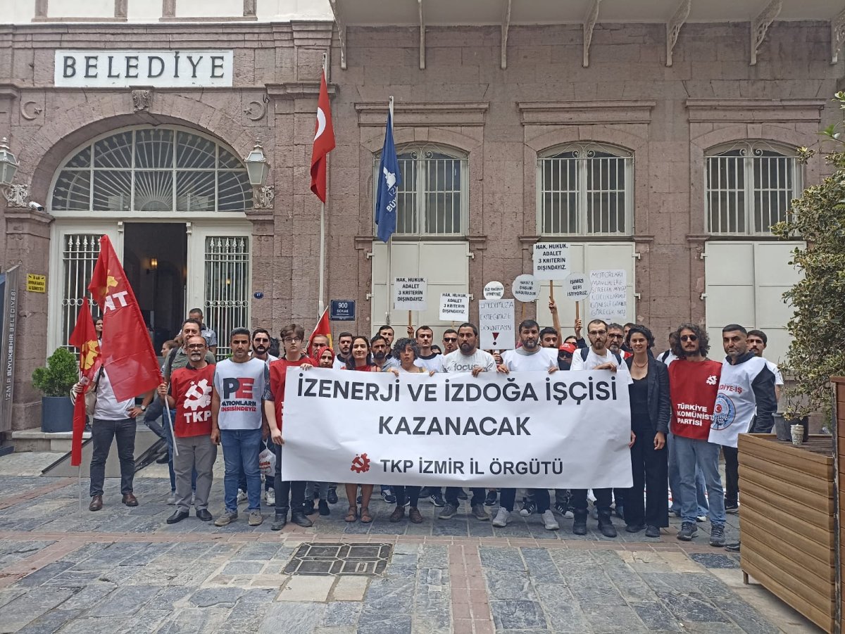 Türkiye Komünist Partisi İzmir İl Örgütü, bugün, İzmir Büyükşehir Belediyesi'ne ait İzenerji ve İzdoğa şirketlerinden çıkarılan ve Konak'taki Egemenlik Binası önünde oturma eylemine başlayan işçileri ziyaret etti. TKP İzmir İl Örgütü adına Av. Eren Selanik konuşma yaptı. Selanik'in konuşması şöyle:
