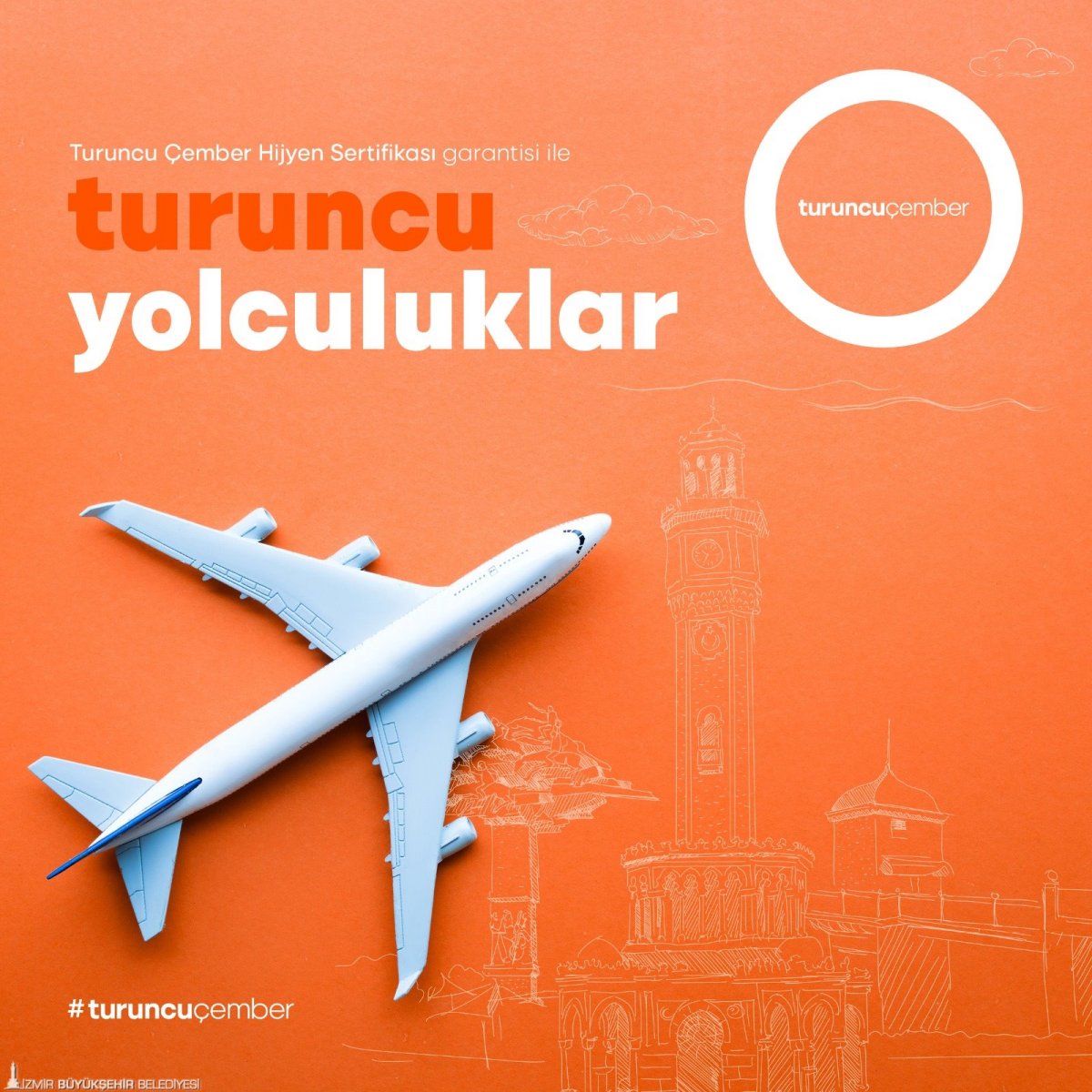 İzmir Büyükşehir Belediye Başkanı Tunç Soyer pandemi sürecinde İzmir turizminin yaşatılması için Turizm Hijyen Kurulu’nu kurduklarını ve İzmir’i sağlıklı ve güvenilir bir destinasyon olarak konumlandıran Turuncu Çember sertifikasını başlattıklarını söyleyerek “Pandeminin yarattığı tüm olumsuzluklara rağmen İzmir’de 2020 turizm sezonunu beklentilerin üzerinde kapatmayı başardık. Konaklama ve yeme-içme işletmelerine verdiğimiz Turuncu Çember’i şimdi herkesin İzmir’e güvenle ulaşabilmesi için havayollarını da kapsayacak şekilde genişletiyoruz. İstiyoruz ki İzmir’e gelen uçuşlar için başlattığımız Turuncu Çember uygulamasıyla Turizm Hijyen Kurulumuz ve İzmir Büyükşehir Belediyesi’nin denetiminde, firmalarının aldığı önlemler daha da artırılsın. Böylece İzmir’deki sağlıklı ve güvenilir alanları ifade eden Turuncu Çember hijyen sertifikası, İzmir’e gelenlere yolculuklarının başından itibaren eşlik edebilecek” dedi.