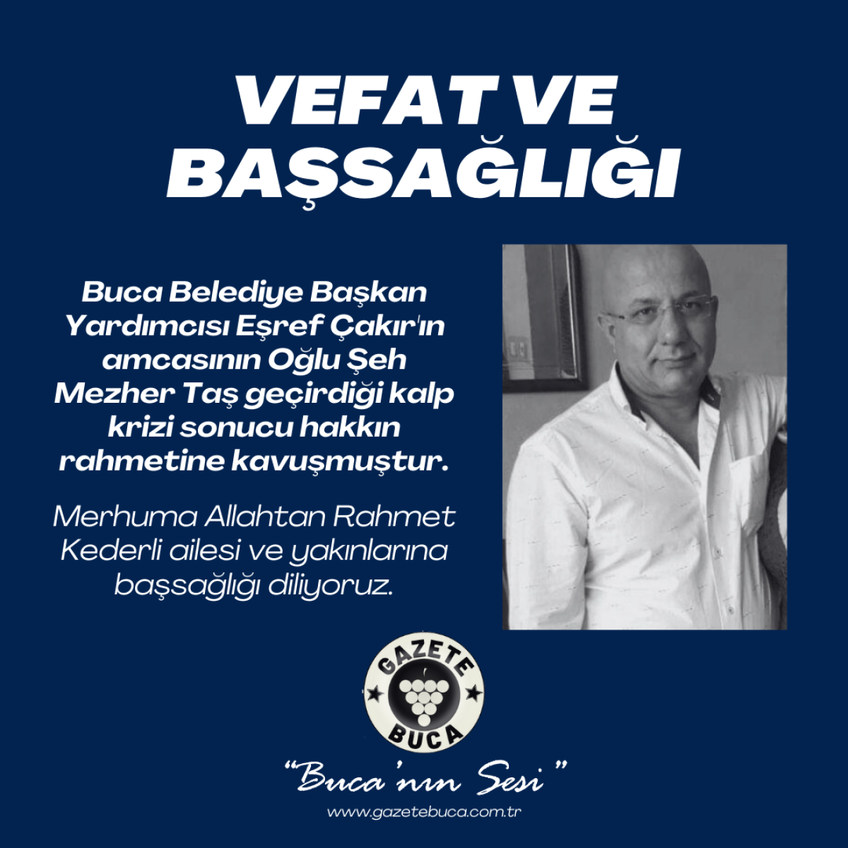 VEFAT VE BAŞSAĞLIĞI Dinle Editor: Gazete Buca 20 Aralık 2022 - 20:41 - Güncelleme: 20 Aralık 2022 - 20:42 Buca Belediye Başkan Yardımcısı Eşref Çakır'ın amcasının Oğlu Şeh Mezher Taş geçirdiği kalp krizi sonucu hakkın rahmetine kavuşmuşturMerhuma Allahtan Rahmet Kederli ailesi ve yakınlarına başsağlığı diliyoruz. Bu haber 1351 defa okunmuştur. Paylaş Tweetle WhatsApp FACEBOOK YORUMLAR YORUMLAR 0 Yorum adlı kullanıcıya cevap DEVA Partisi Buca'da Muhtarlarla Güçlü İstişare Buluşması Gerçekleştirdi MHP BUCADA ÜYE HAREKETLİLİĞİ Gençler hem yürüdü hem sosyalleşti Buca Belediyesi Hediyelik Eşya Pazarı’na yoğun ilgi Büyükşehir Belediyesi evsizlere kapılarını açtı WhatsApp’ta yeni özellik: Silinen mesajlar geri yüklenebilecek